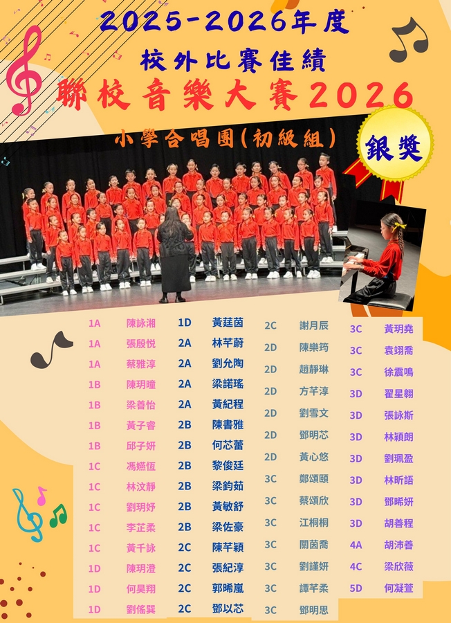 第75屆香港學校朗誦節 普通話集誦比賽成績